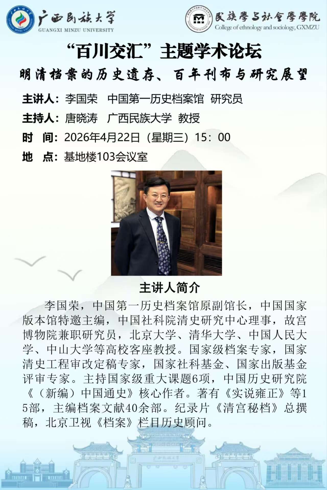 广西民族大学民族学与社会学学院2026年博士研究生“申请考核”制 | 2026-04-21 |