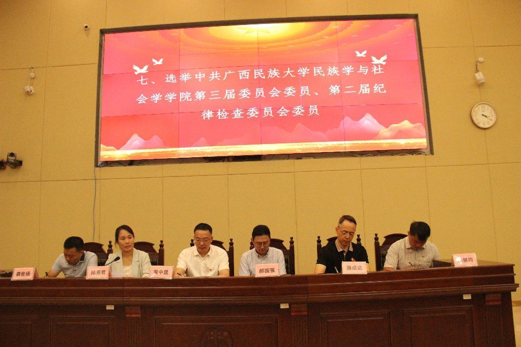 10月14日下午,民族学与社会学学院党员大会于创新楼报告厅隆重召开。与会党员认真听取并审议了上一届党委工作报告,大会成功选举产生了新一届党委委员和纪委委员。学院党委副书记陆惠君主持,全体师生党员参加会议。
