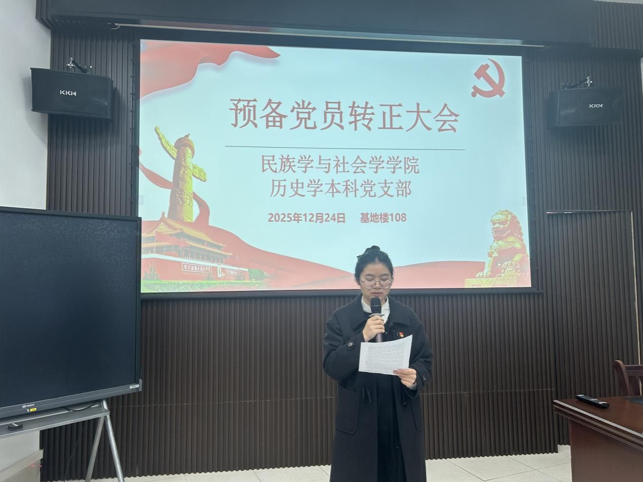 近日,民族学与社会学学院各学生党支部分别召开党员大会,严格按照组织程序,顺利完成预备党员接收及预备党员转正工作。一批表现突出的发展对象被接收为中共预备党员,同时,符合条件的预备党员按期转为正式党员,为党组织增添了新生力量,进一步强化了支部的组织建设和战斗力。