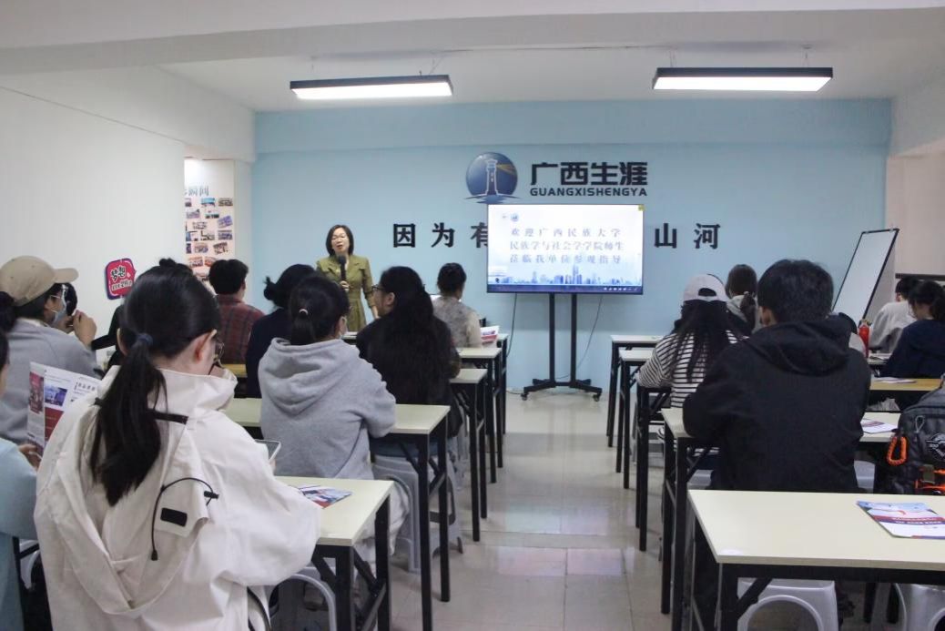为切实破解毕业生就业难题,助力学生精准对接职场、提升就业竞争力,11月25日下午,民族学与社会学学院赴南宁市家和兴职业培训学校开展“一日职场人”就业体验活动。在学校党委副书记陆惠君的带领下,师生代表共同参与,活动取得圆满成功。