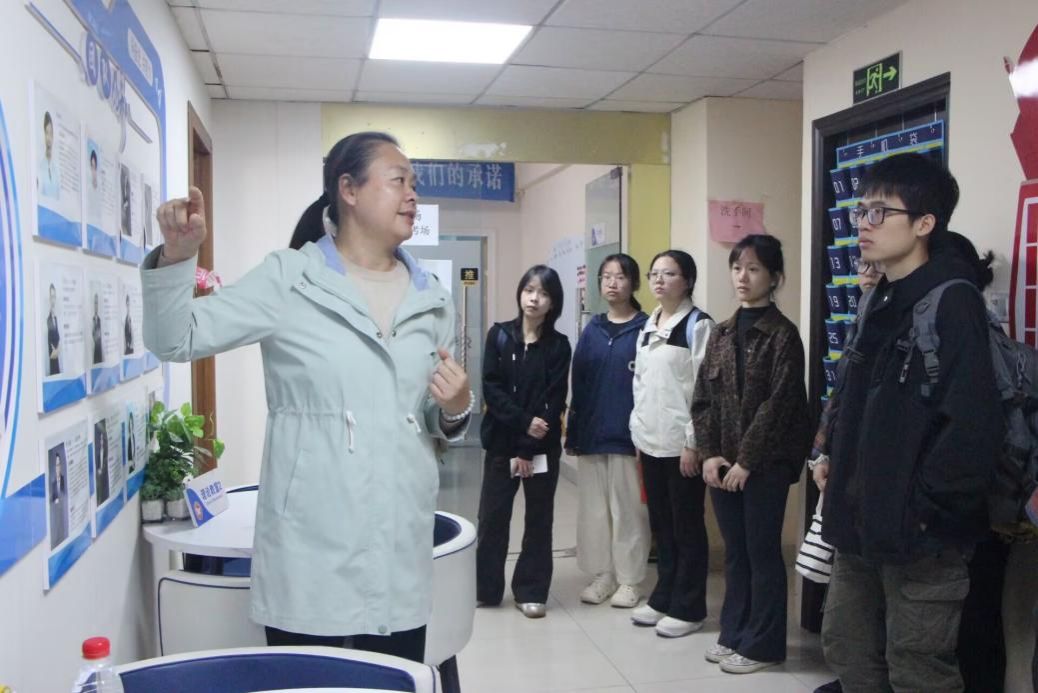 在南宁市家和兴职业培训学校讲师张娟的引导下,同学们先后参观了教学区、实训场地及教务办公区。张娟详细讲解了各区域的功能与运营模式,使同学们沉浸式体验职业培训学校的办学特色,深化了对职业教育行业的理解。