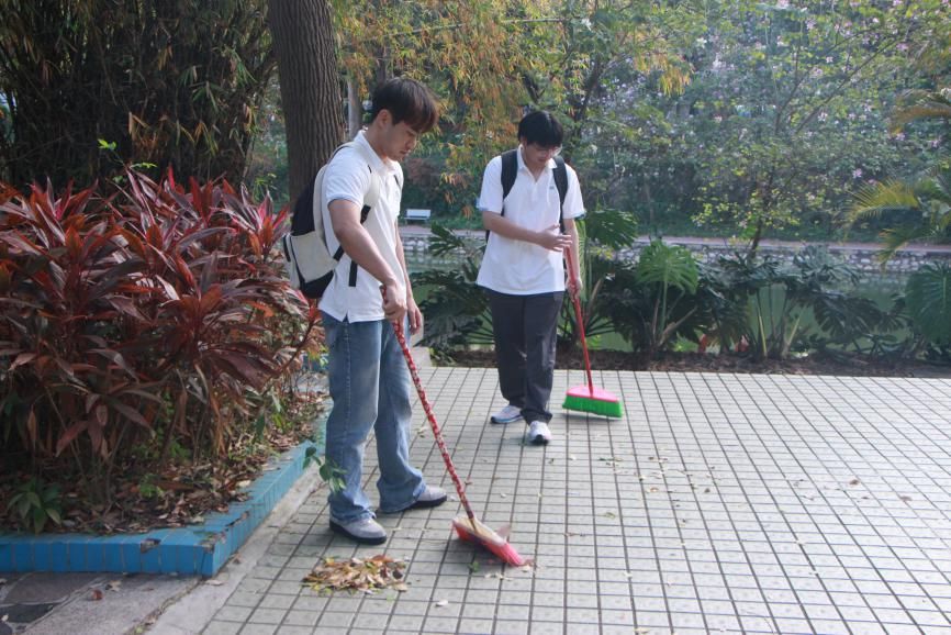 活动期间,团学志愿者们统一身着院服,前往民社学院基地楼开展环境清洁与整理工作。大家分工明确,重点对学院门口广场、台阶进行全面清扫,仔细清理地面落叶,并对105室办公区域的杂物进行规整。经过认真打扫,基地楼公共区域环境焕然一新,办公秩序也更加规范。