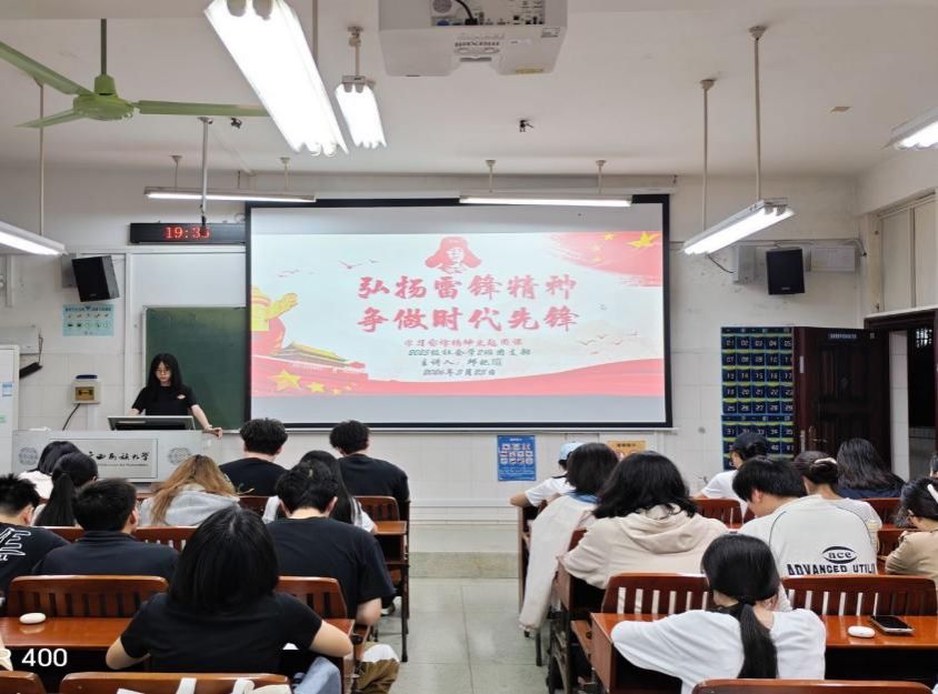 3月23日晚,班级在校友楼605教室召开“弘扬雷锋精神 争做时代先锋”主题团课,团支书邱妃瑄担任主讲人。她围绕“雷锋的光荣事迹”“雷锋精神的内涵”“新时代如何学雷锋”三个篇章展开讲述。一张张珍贵的历史图片、一段段感人的真实故事,生动再现了雷锋同志平凡而伟大的一生。“把有限的生命投入到无限的为人民服务之中去”,这句朴素的话语引发了在场同学的强烈共鸣。