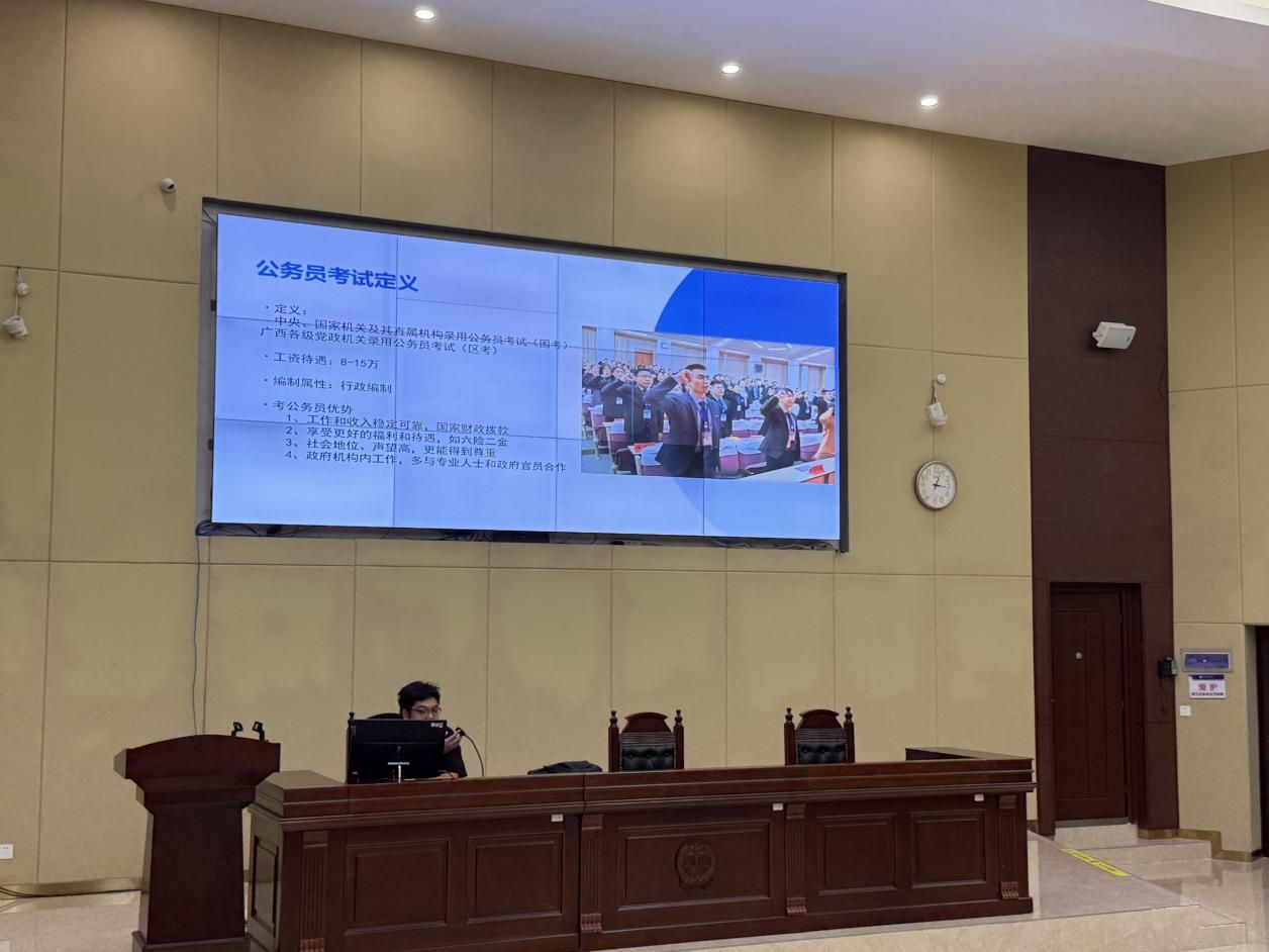 培训会围绕公务员待遇、考试类型、考试概况、考试组织与时间、考试内容等展开讲解。详细解读了中央机关及其直属机构考试(国考)、省级公务员考试(省考)、选调生考试三种考试类型的报名时间、招录单位及招录人数,帮助同学们根据自身条件明确报考方向。